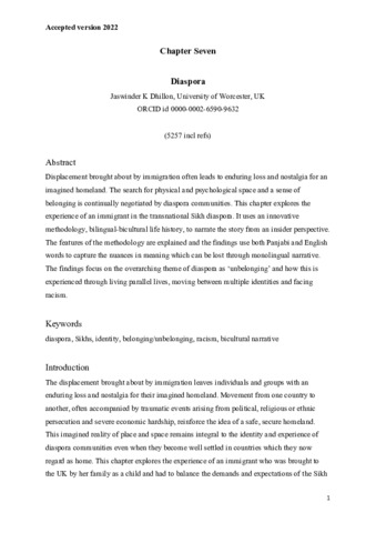 Chapter seven Dhillon Diaspora accepted version 2022.pdf - Accepted Version Download (257kB) | Preview |