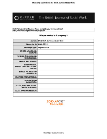 O'Brien, Claire and Asamoah, Diane (2023) Whose Voice is It Anyway? British Journal of Social Work, 53 (3). pp. 1878-1882. ISSN 0045-3102