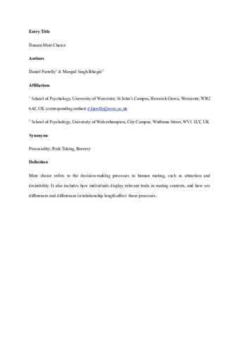 Human Mate Choice.pdf - Accepted Version Download (180kB) | Preview |