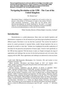 Navigating Devolution at the UPR - The Case of the United Kingdom.pdf - Accepted Version Available under License Creative Commons Attribution Non-commercial No Derivatives. Download (406kB) | Preview |