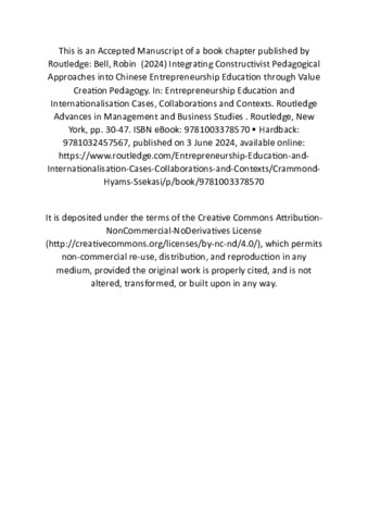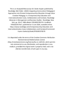 Integrating Western Pedagogical Approaches into Chinese Entrepreneurship Education through Value Creation Pedagogy.pdf - Accepted Version Restricted to Repository staff only Available under License Creative Commons Attribution Non-commercial No Derivatives. Download (248kB) | Request a copy |