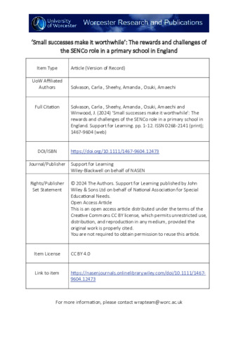 ‘Small successes make it worthwhile’: The rewards and challenges of the SENCo role in a primary school in England.