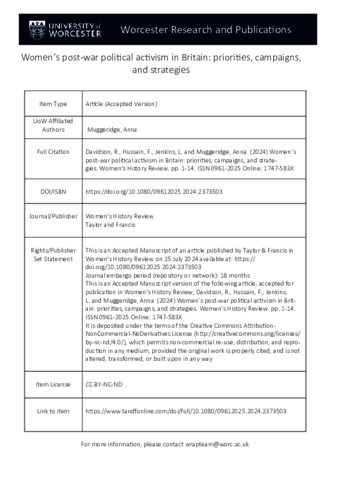 Women’s post-war political activism in Britain: priorities, campaigns, and strategies.