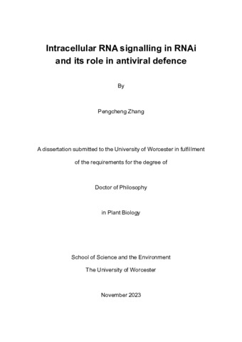 Zhang, Pengcheng (2024) Intracellular RNA signalling in RNAi and its role in antiviral defence. PhD thesis, University of Worcester.