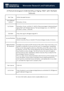 A Phenomenological Understanding of Aging ‘Well’ with Multiple Sclerosis.