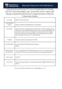 Evaluating Pacing Therapy (PT) versus Graded Exercise Therapy (GET) for improving fatigue, pain, and quality of life in adults with Myalgic Encephalomyelitis/Chronic Fatigue Syndrome (ME/CFS): A Systematic Review.