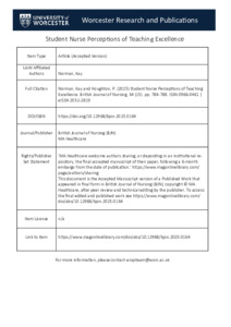 Norman, Kay and Houghton, P. (2025) Student Nurse Perceptions of Teaching Excellence. British Journal of Nursing, 34 (15). pp. 784-788. ISSN 0966-0461 | eISSN 2052-2819