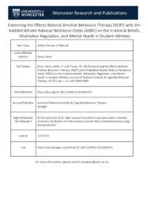 Elvins, Mark, Miller, A. and Turner, M. (2025) Examining the Effects Rational Emotive Behaviour Therapy (REBT) with Embedded Athlete Rational Resilience Credo (ARRC) on the Irrational Beliefs, Motivation Regulation, and Mental Health in Student-Athletes. Journal of Rational-Emotive & Cognitive-Behavior Therapy, 43 (55). pp. 1-22. ISSN 0894-9085