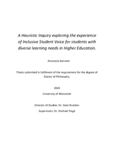 A Heuristic Inquiry exploring the experience of Inclusive Student Voice for students with diverse learning needs in Higher Education.