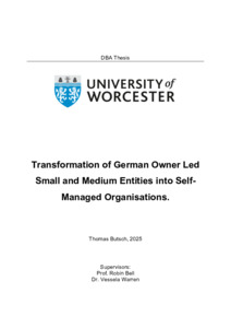 Butsch, Thomas (2026) Transformation of German Owner Led Small and Medium Entities into Self-Managed Organisations. DBA thesis, University of Worcester.